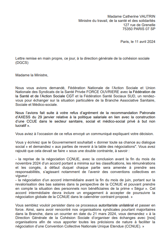 FO refuse de cautionner les injonctions ministérielles concernant la CCNUE